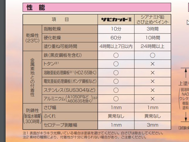 サビカット2のカタログを調べるとトタンが○になっています。